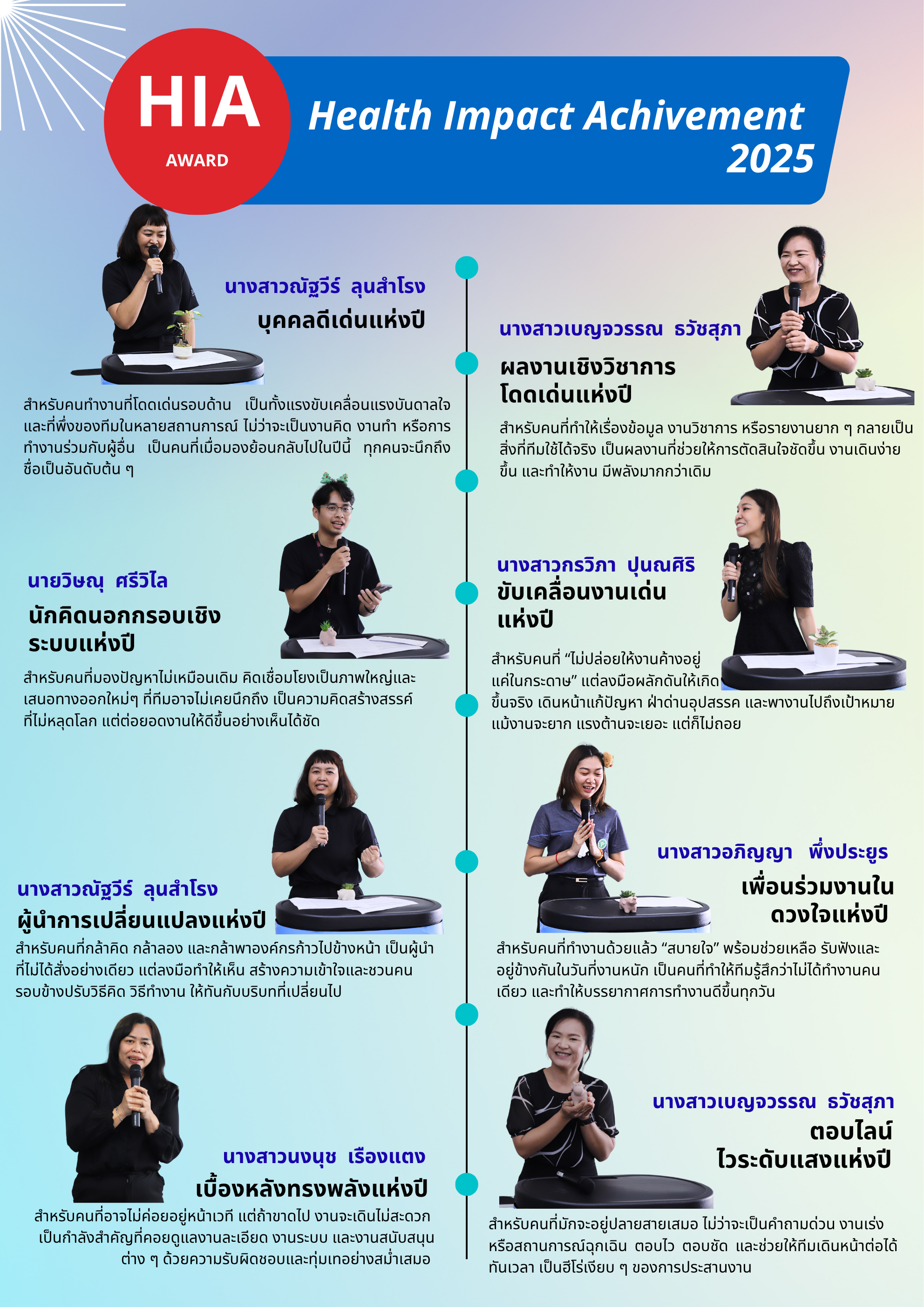 ได้จัดกิจกรรมยกย่องเชิดชูบุคคลต้นแบบ (My Idol) ของหน่วยงาน รางวัล HIA Award 2025 เพื่อยกย่องเชิดชูบุคลากรในหน่วยงาน ที่ปฏิบัติตนตามระเบียบราชการ มีคุณธรรม และมุ่งมั่นตั้งใจทำงานเพื่อองค์กรและส่วนรวม รวมถึงทำทำความดีเป็นแบบอย่างให้ผู้อื่นได้