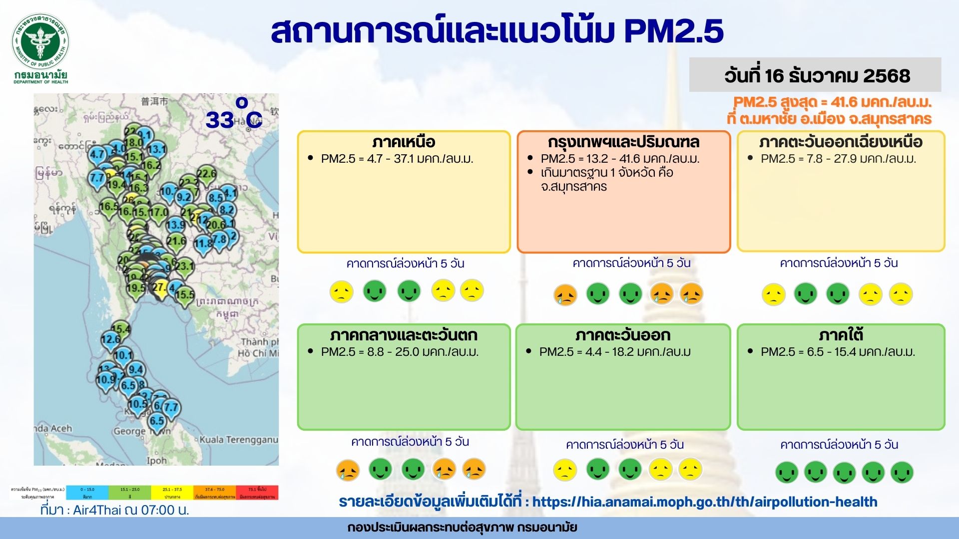 สถานการณ์และแนวโน้ม PM2.5 วันที่ 16 ธันวาคม 2568