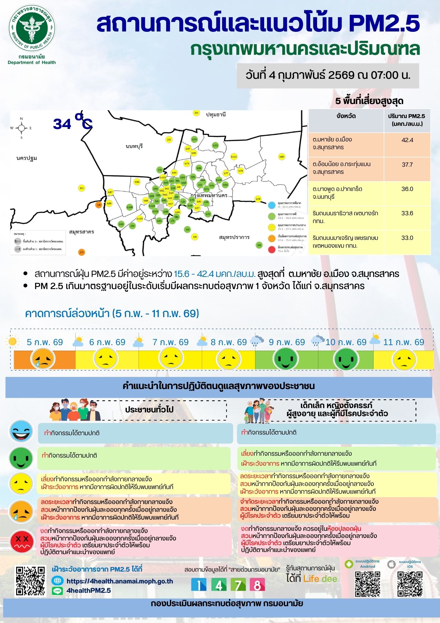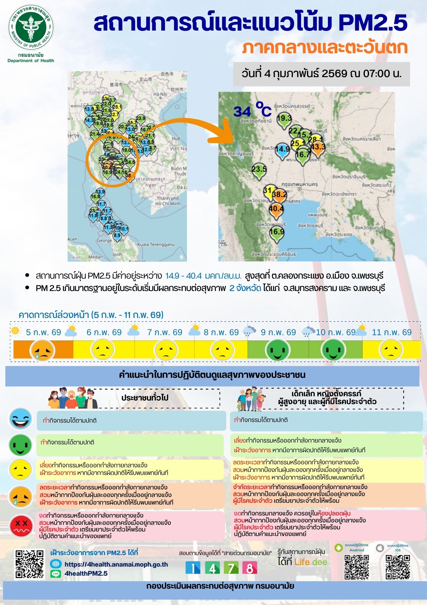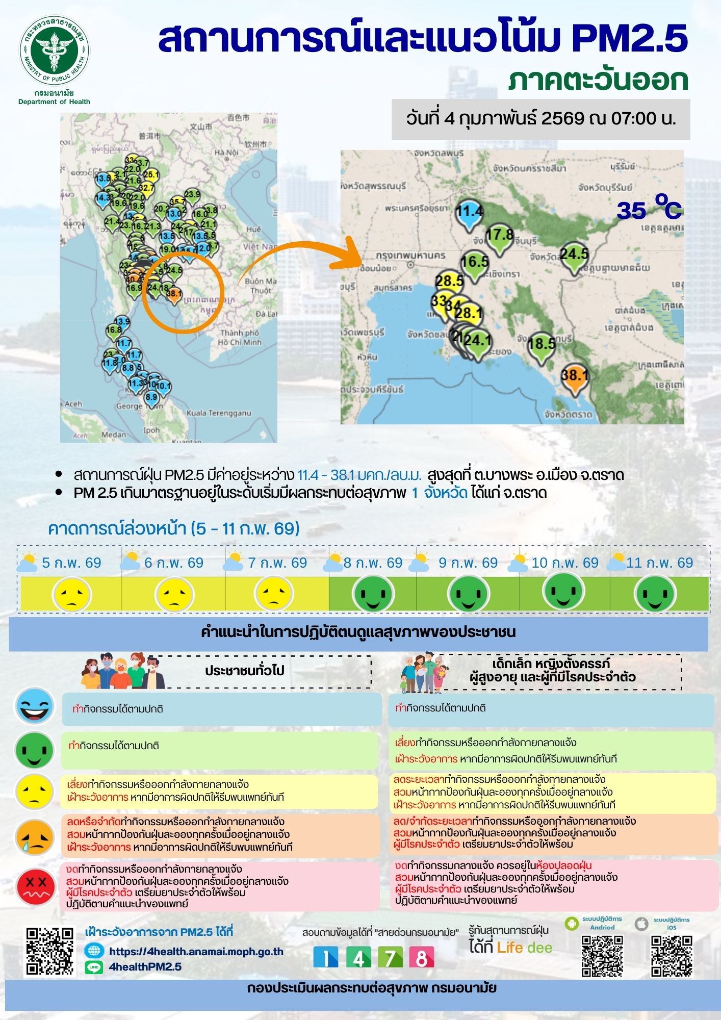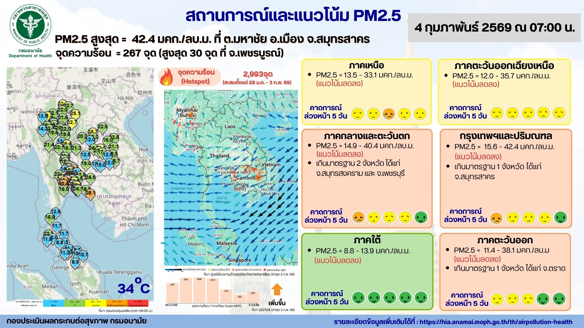 สถานการณ์และแนวโน้ม PM2.5 วันที่ 4 กุมภาพันธ์ 2569