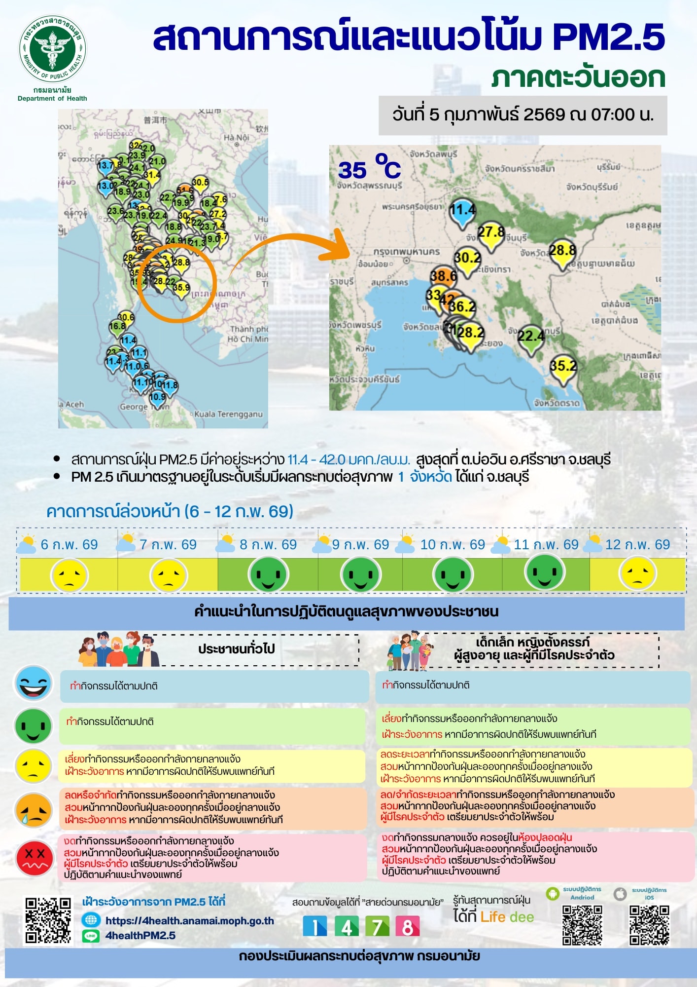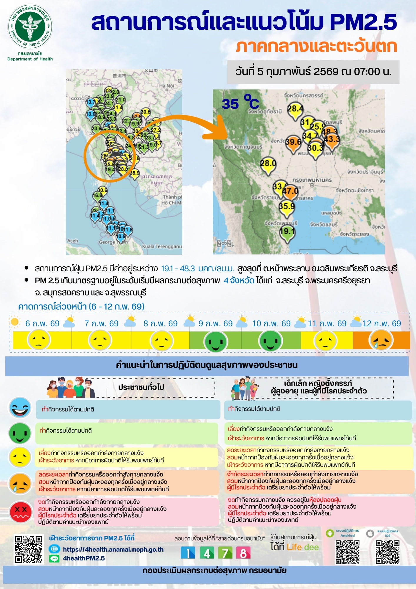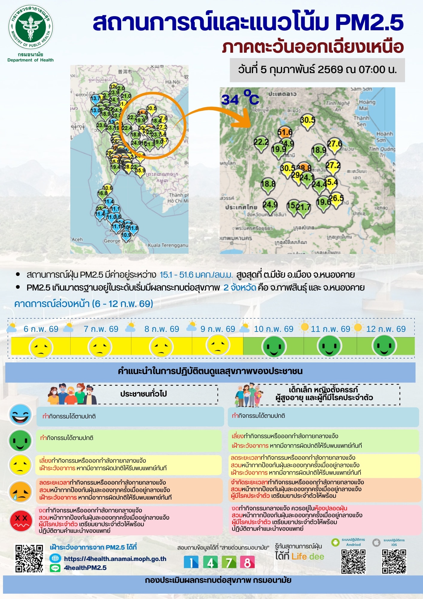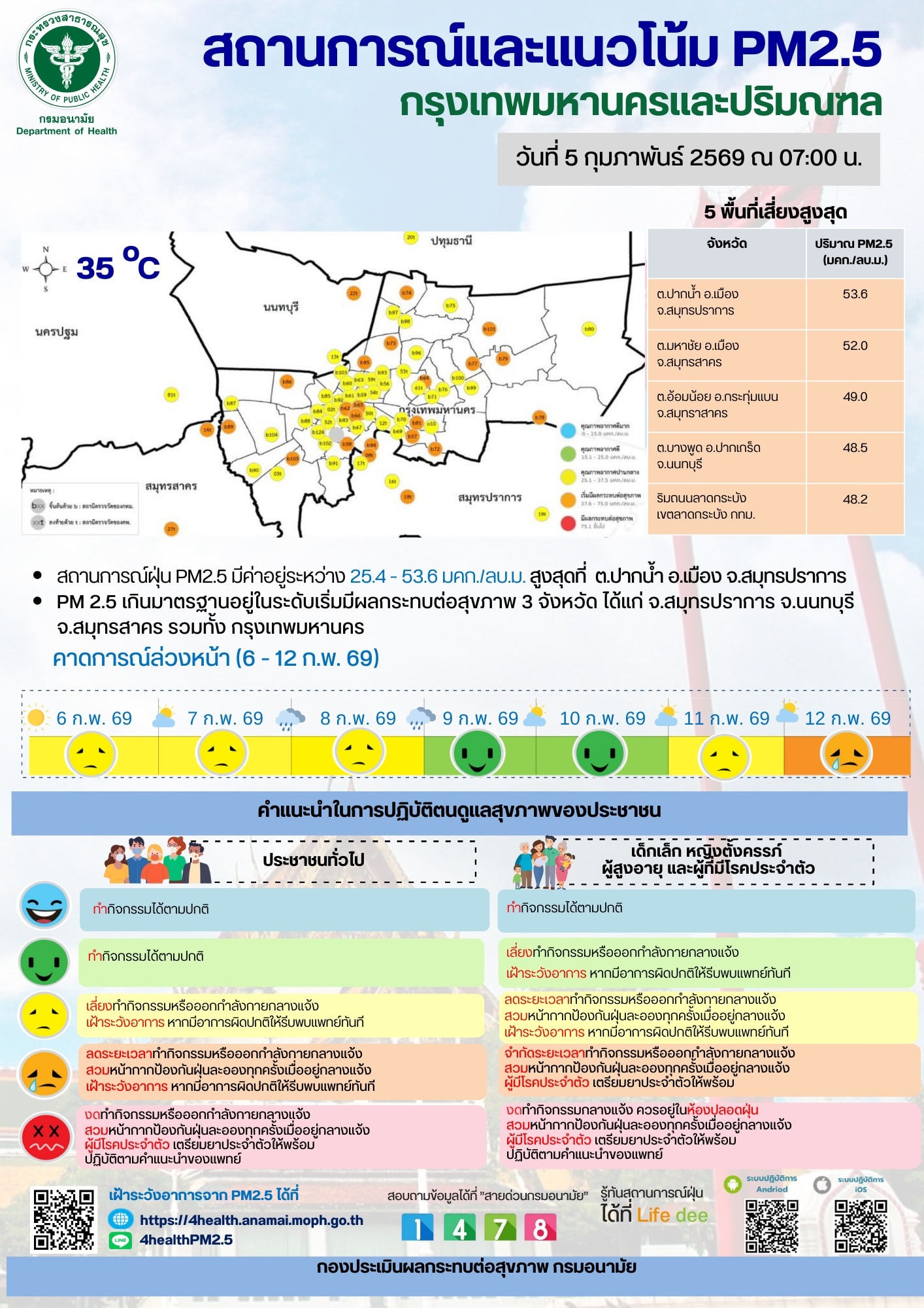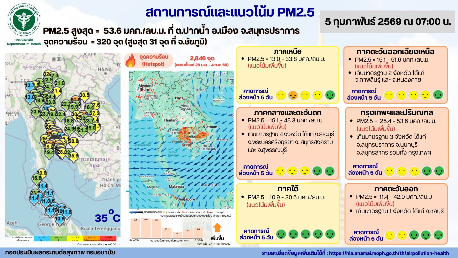 สถานการณ์และแนวโน้ม PM2.5 วันที่ 5 กุมภาพันธ์ 2569