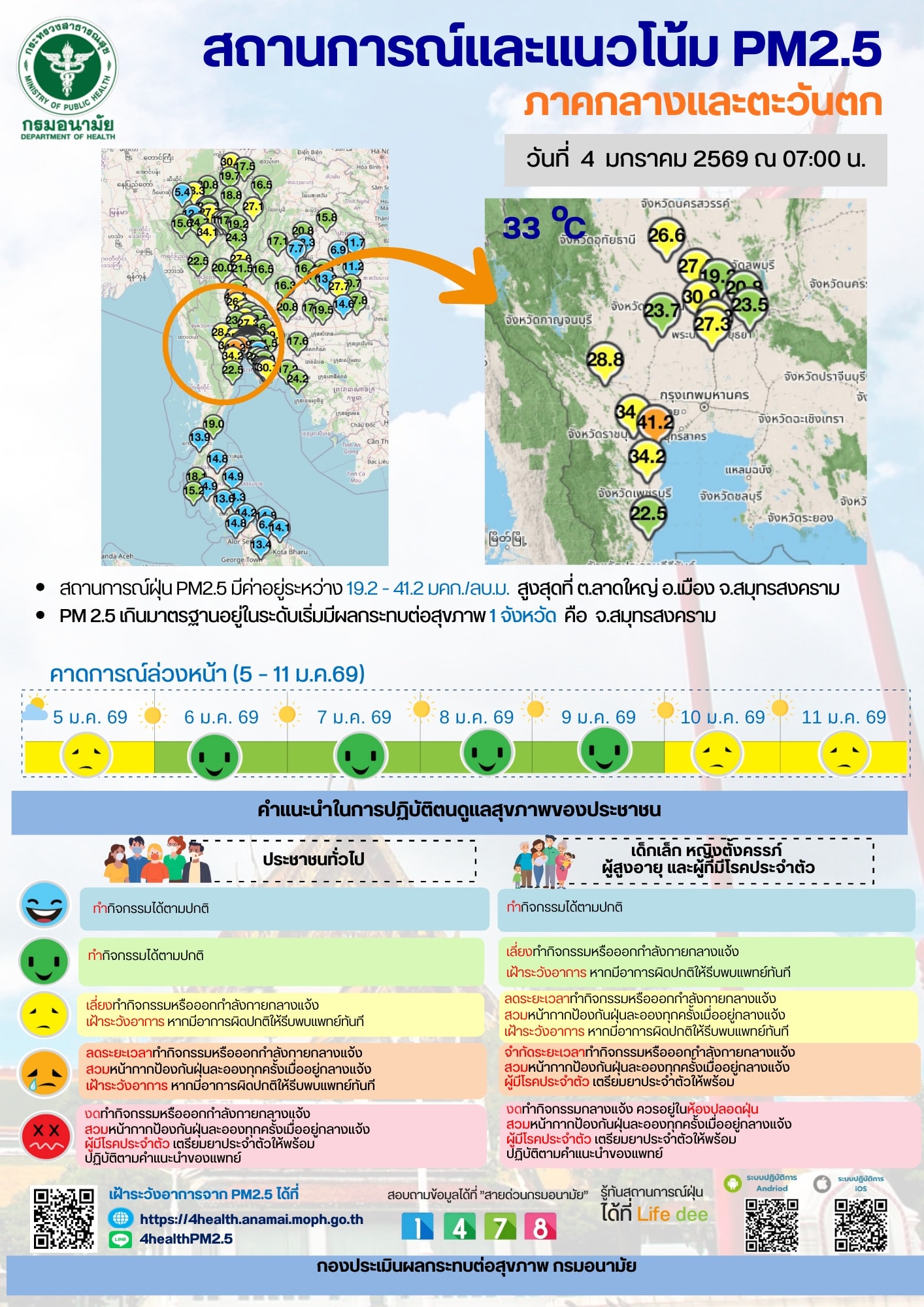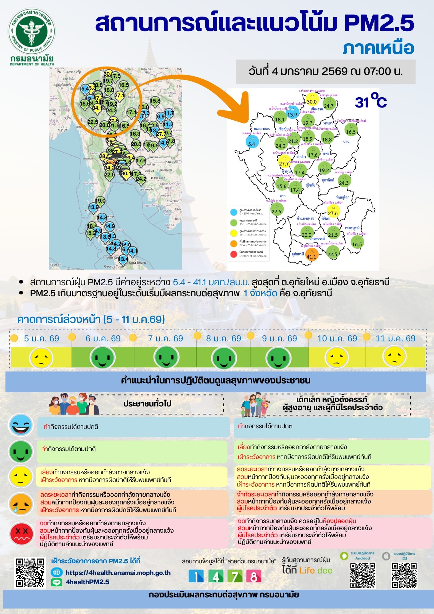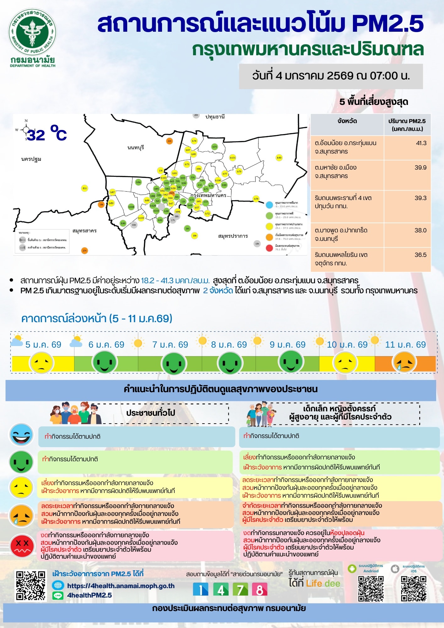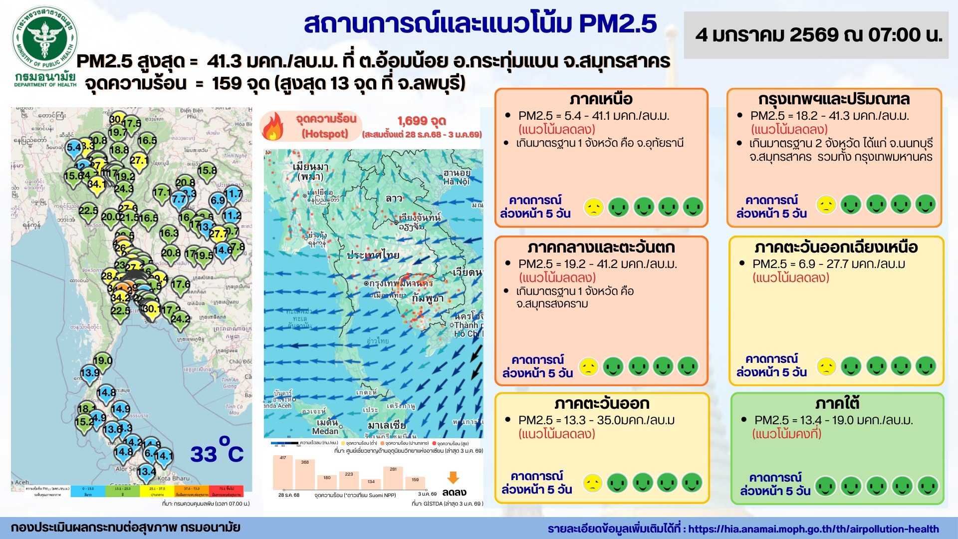สถานการณ์และแนวโน้ม PM2.5 วันที่ 4 มกราคม 2569