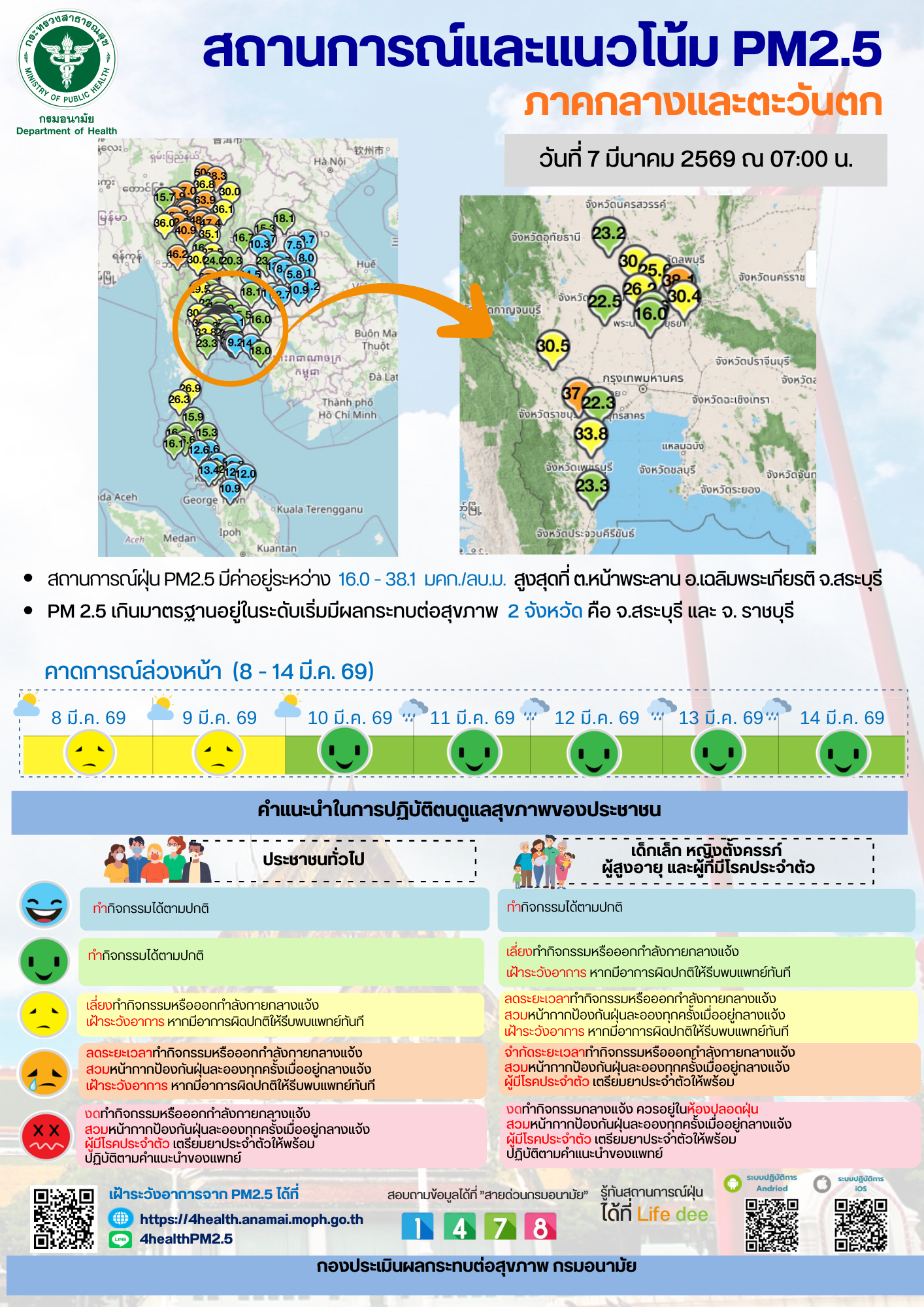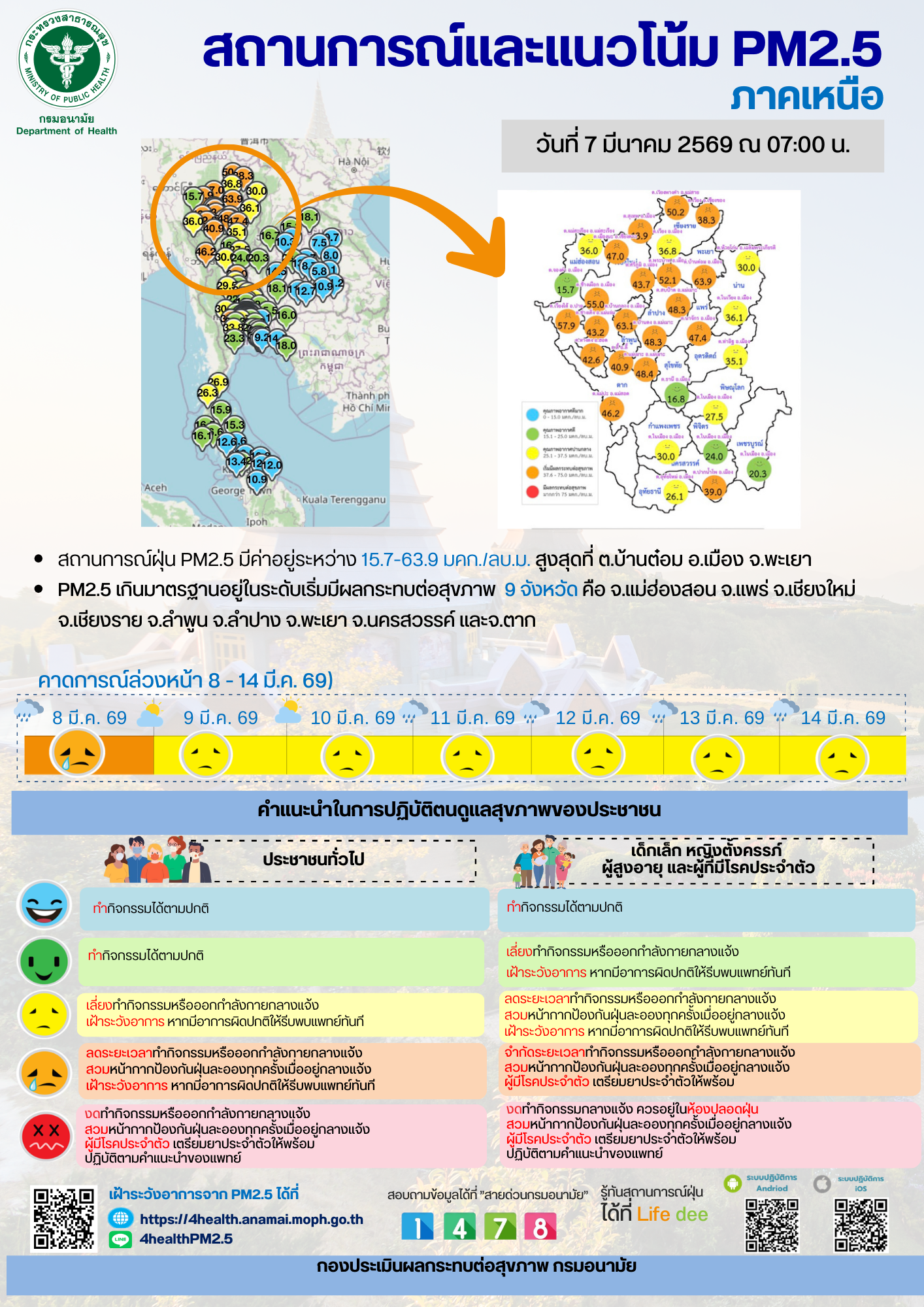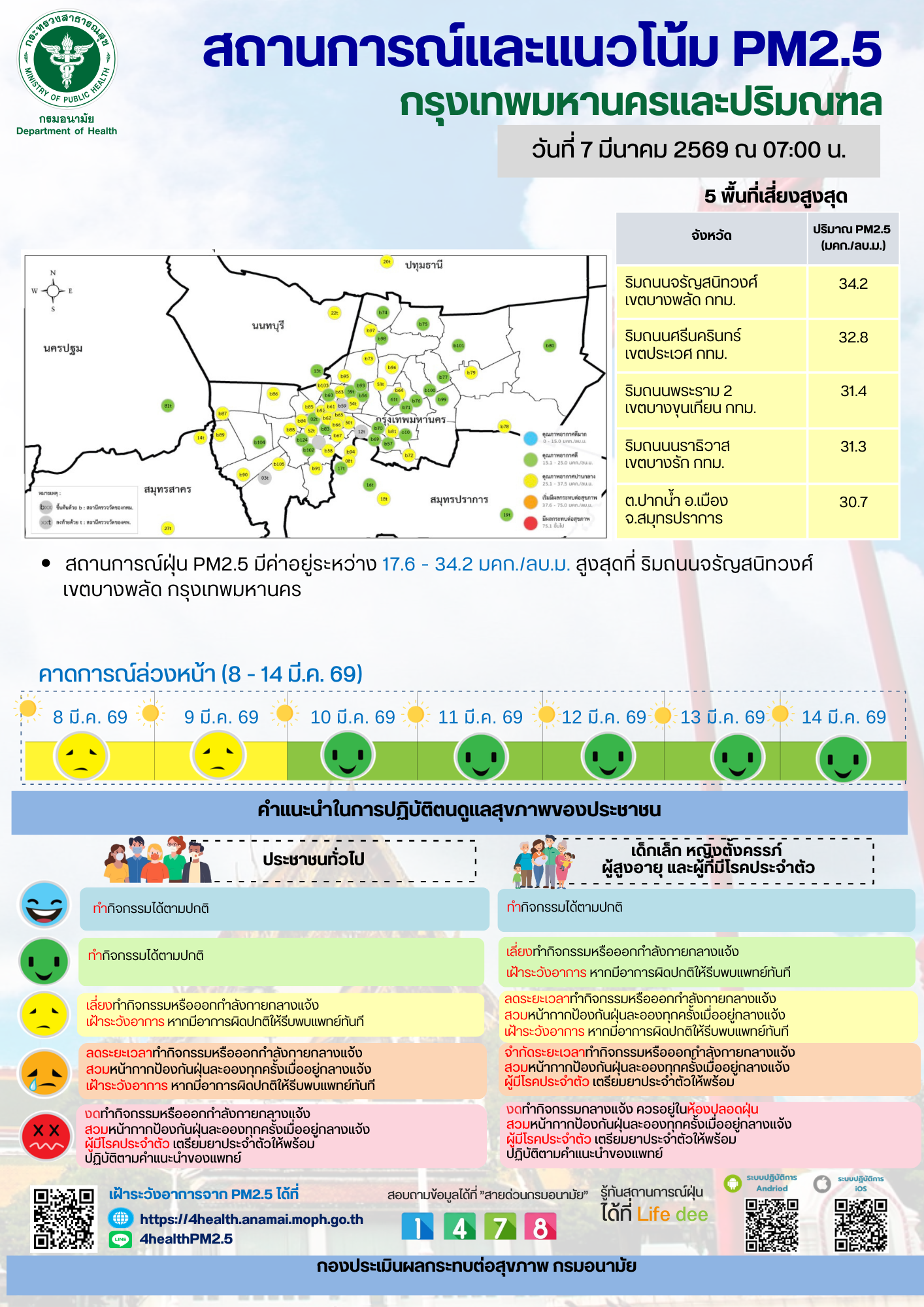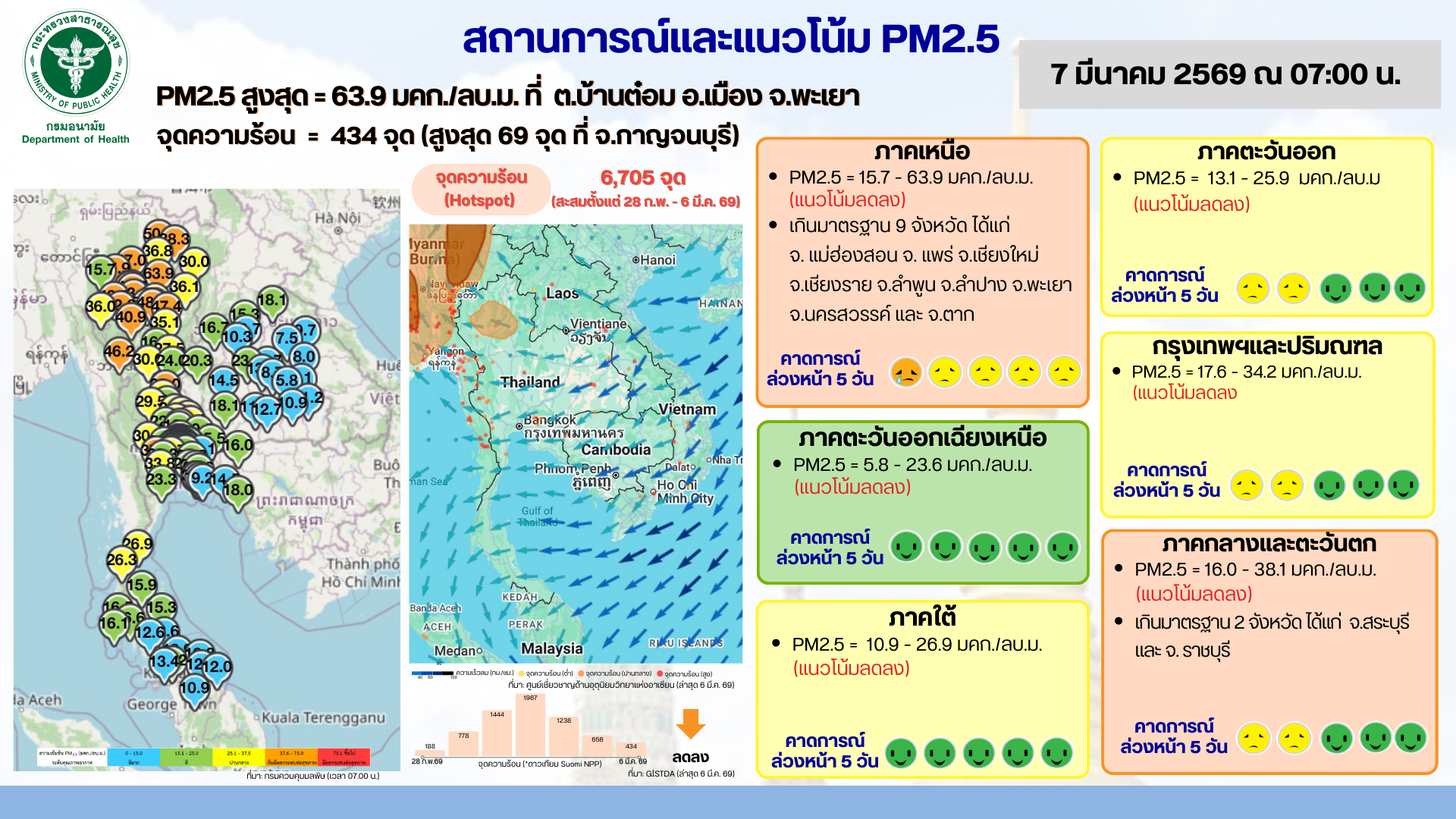 สถานการณ์และแนวโน้ม PM2.5 วันที่ 7 มีนาคม 2569