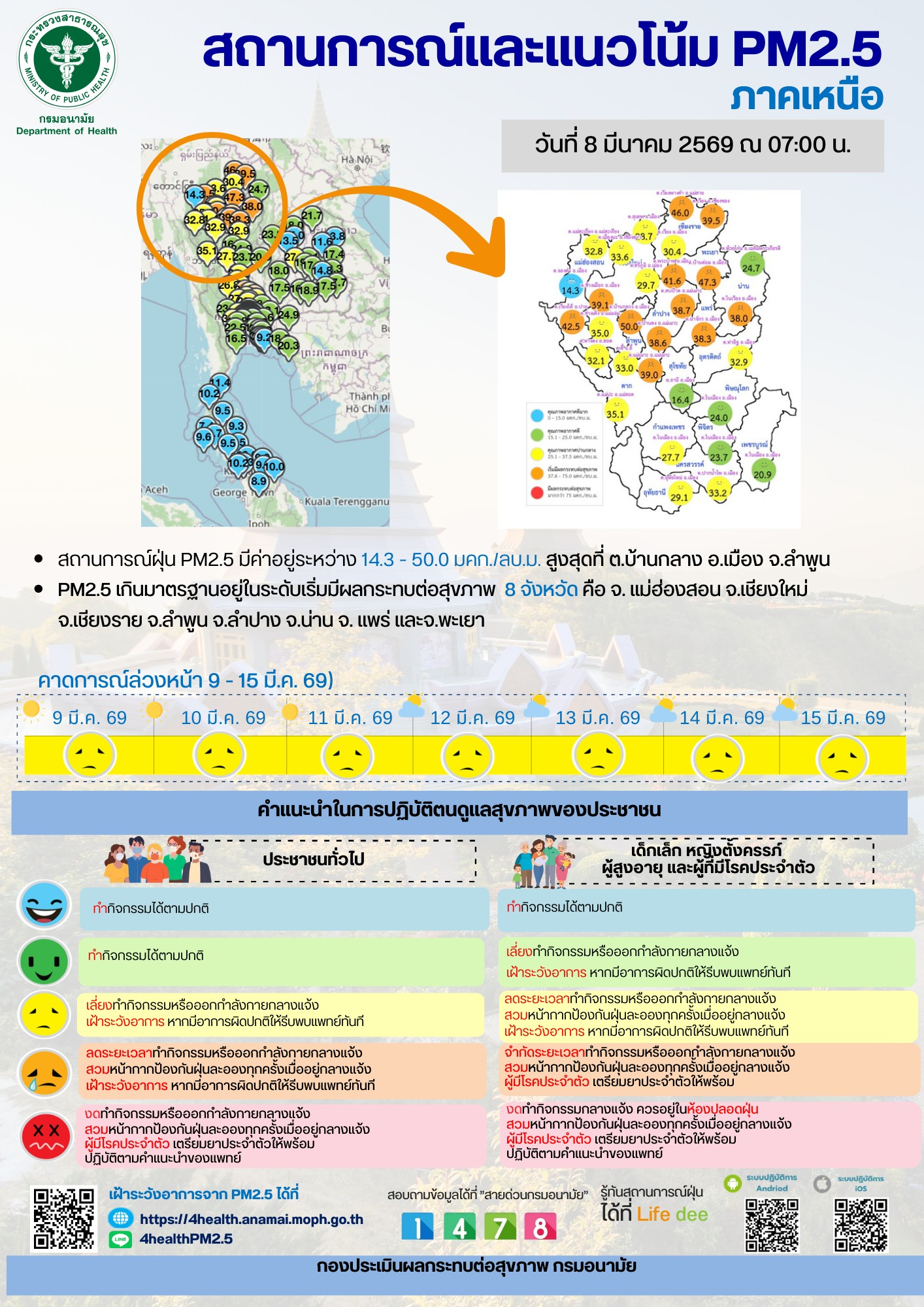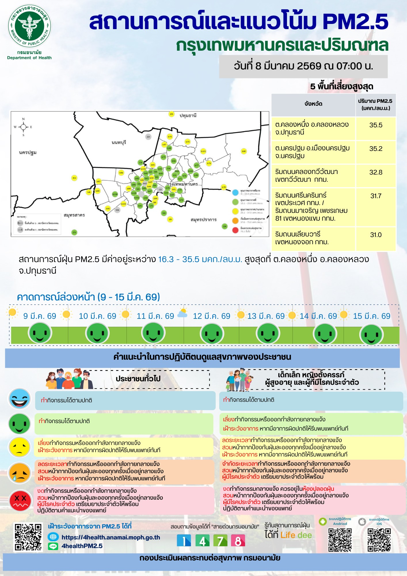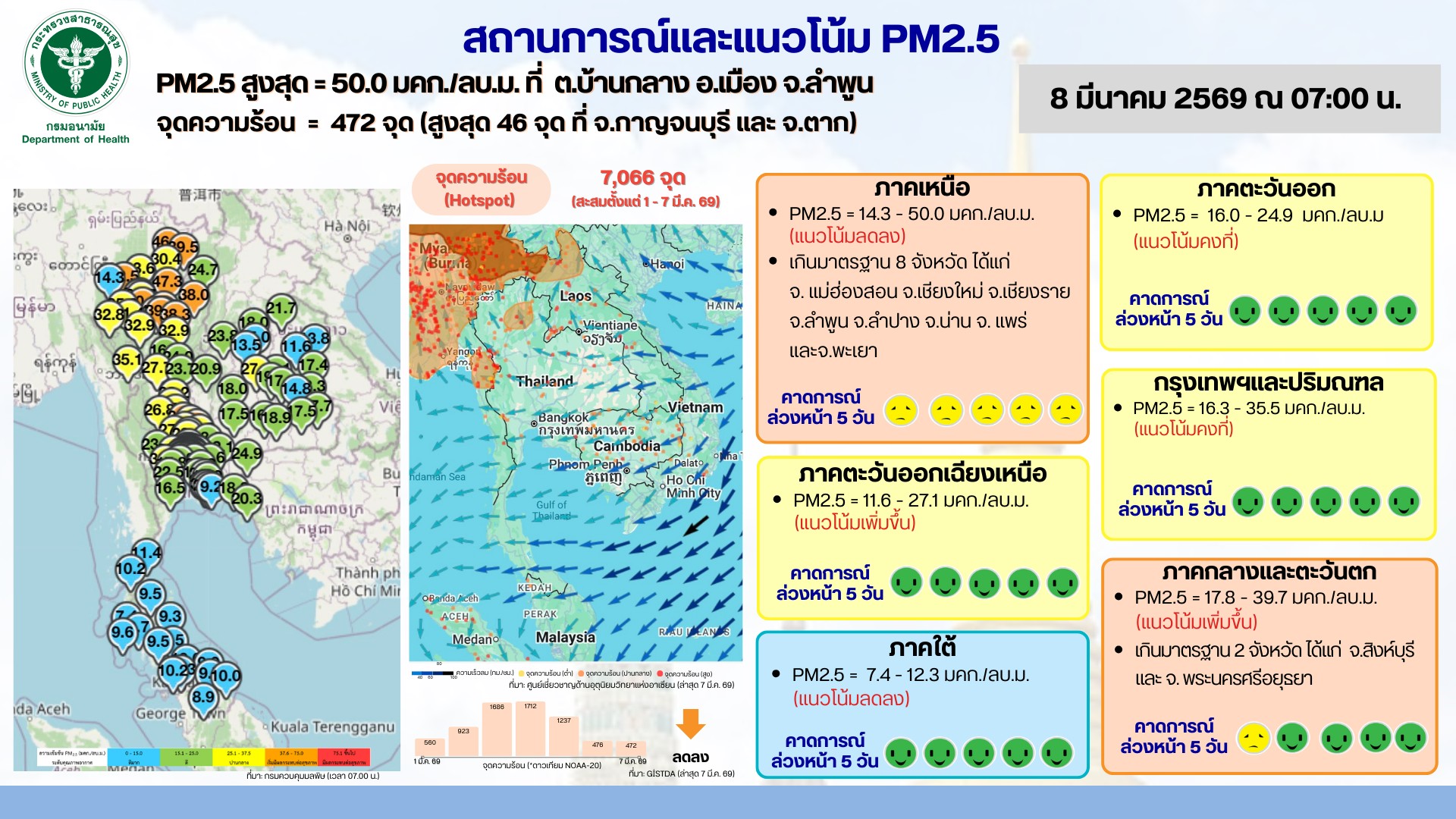 สถานการณ์และแนวโน้ม PM2.5 วันที่ 8 มีนาคม 2569