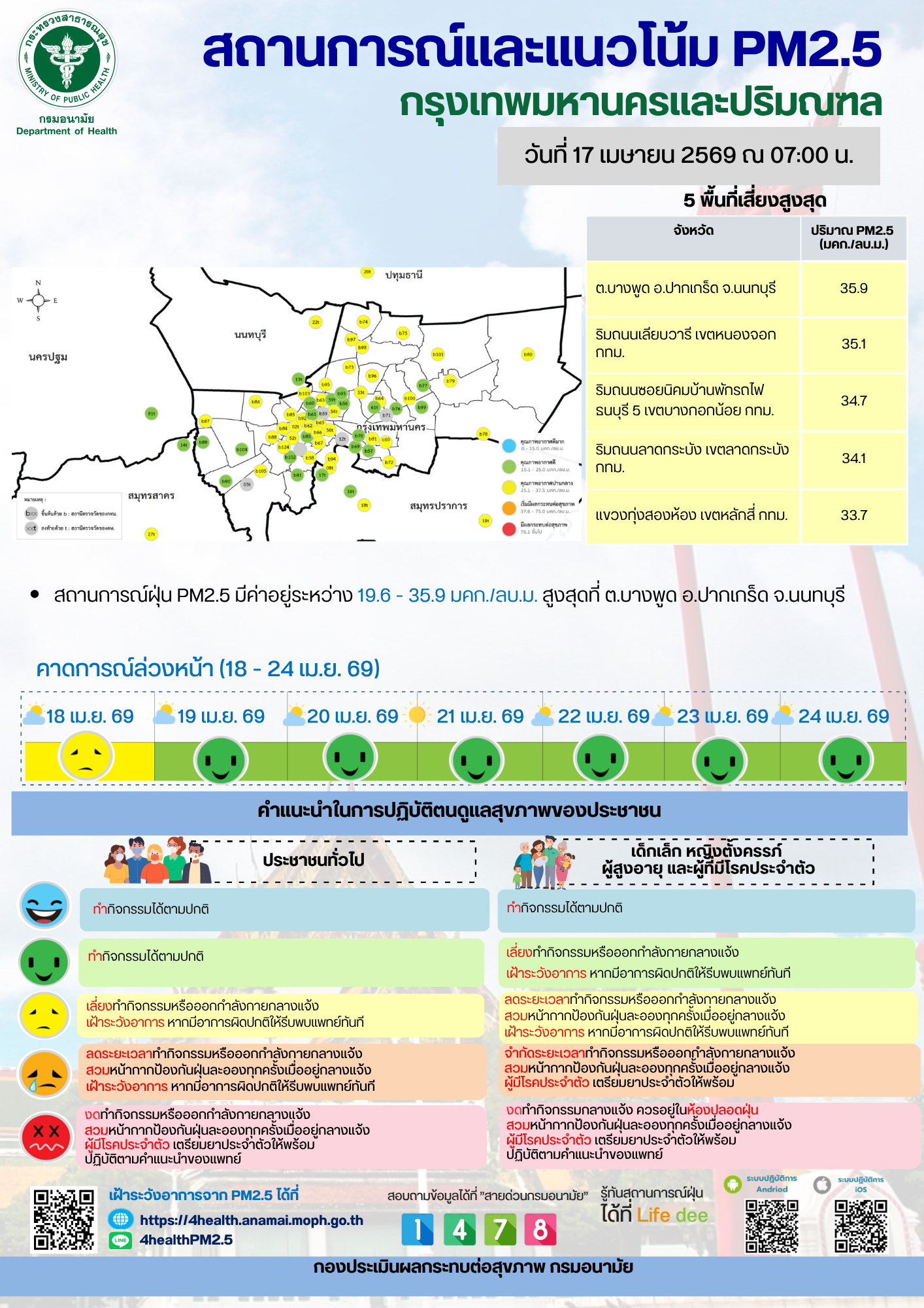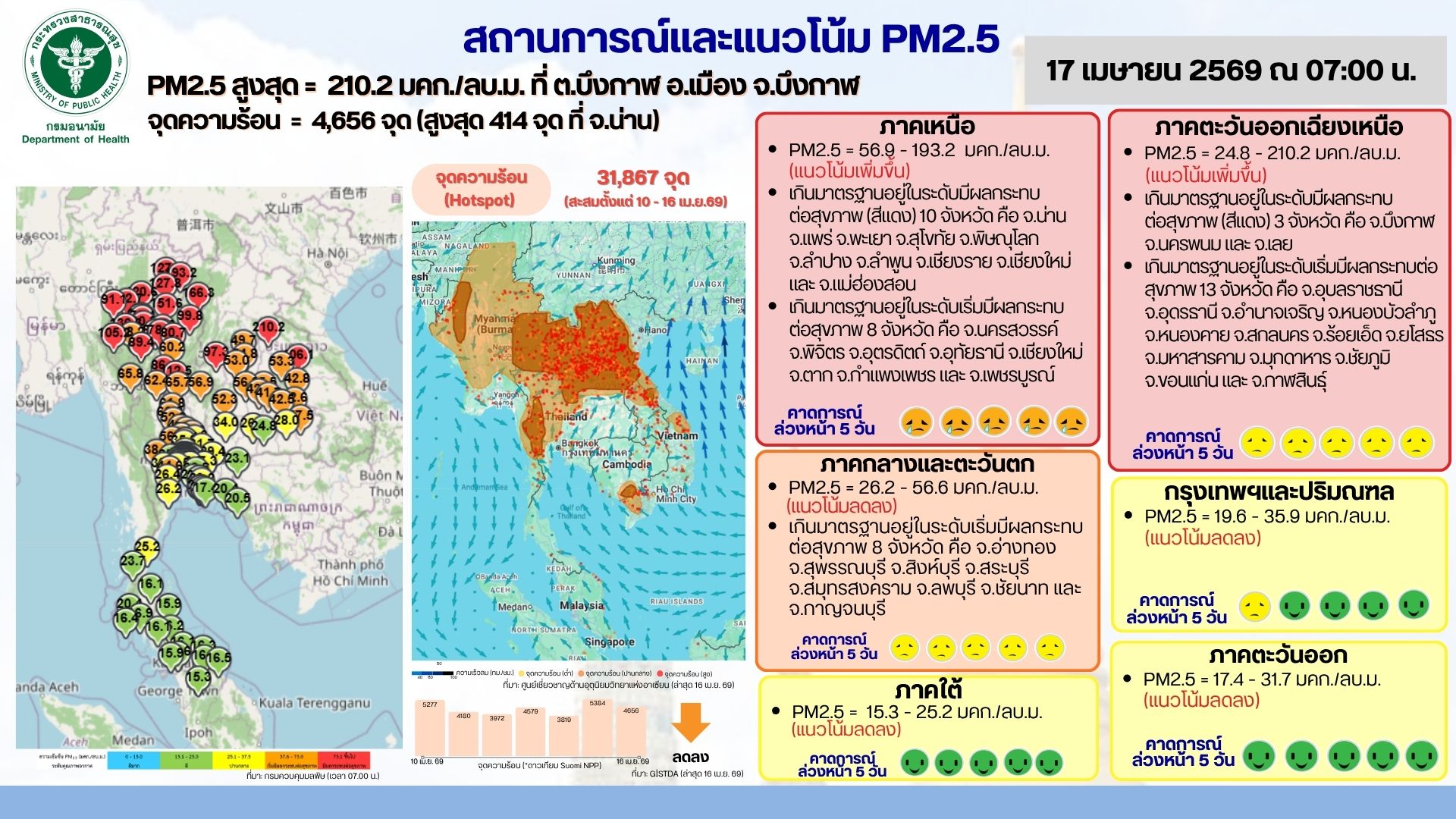สถานการณ์และแนวโน้ม PM2.5 วันที่ 17 เมษายน 2569