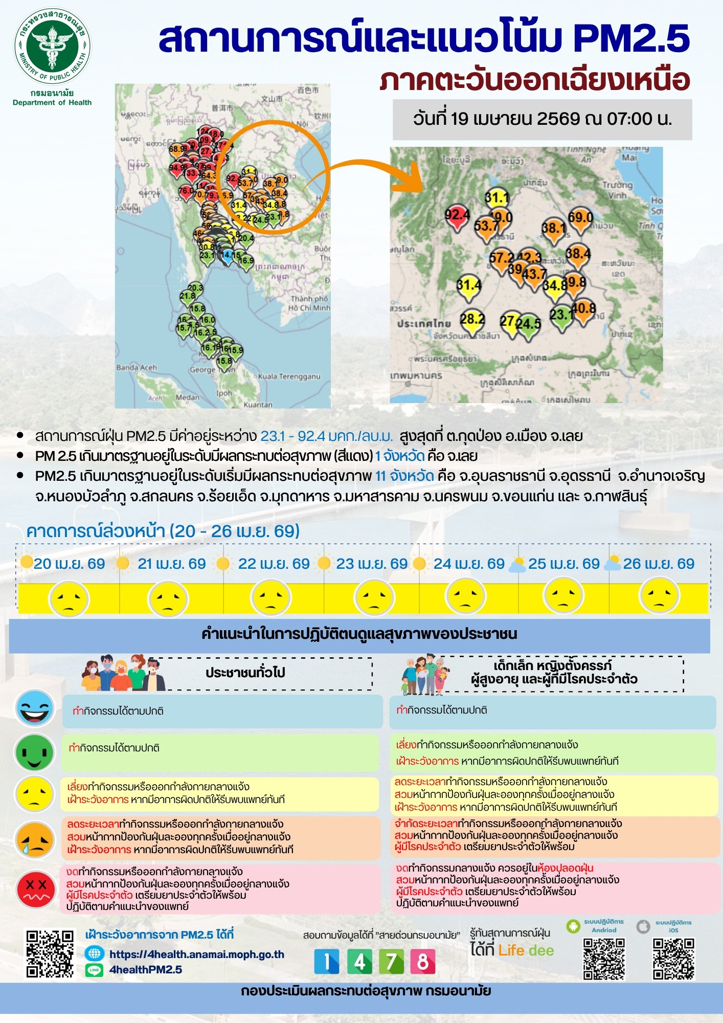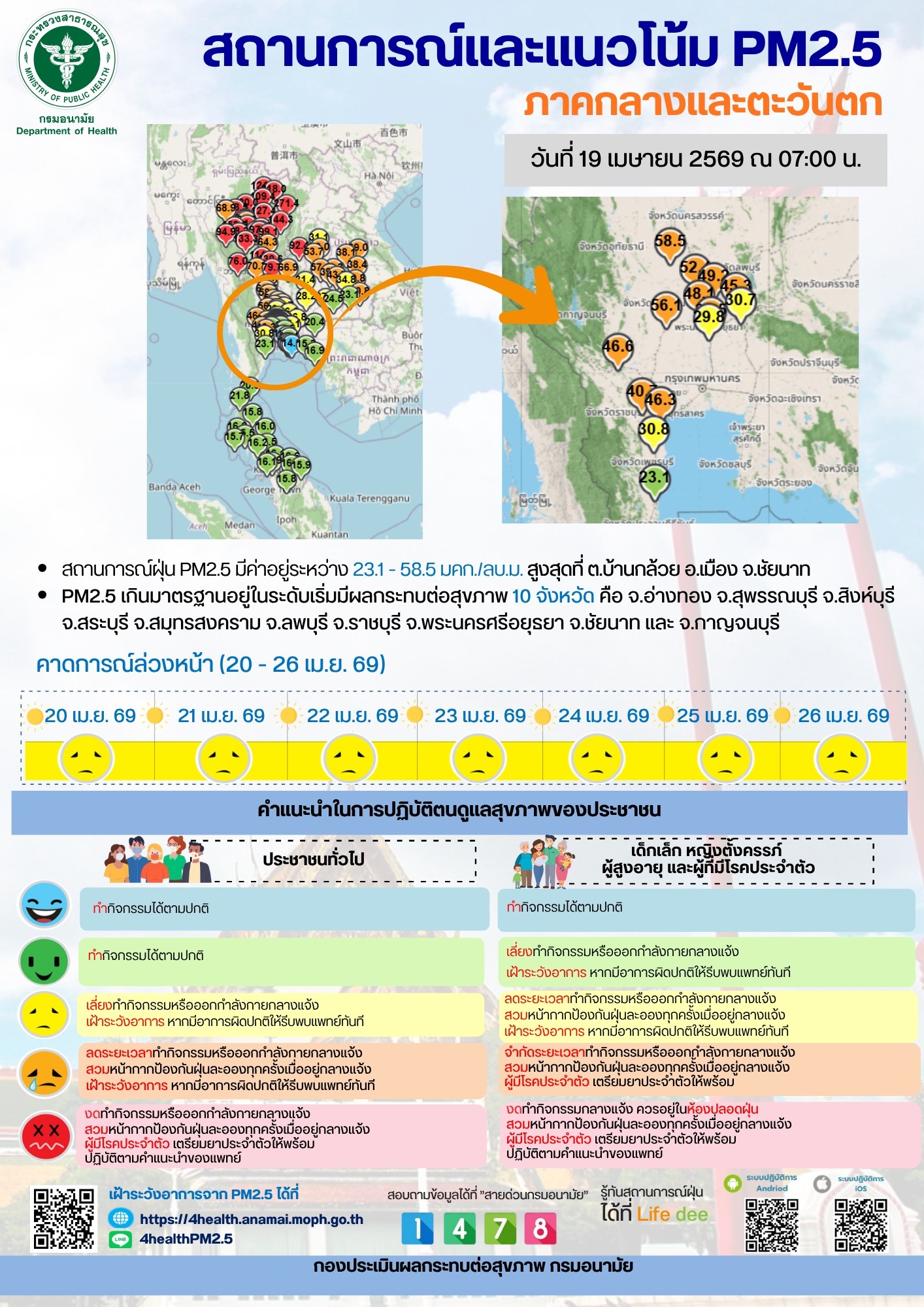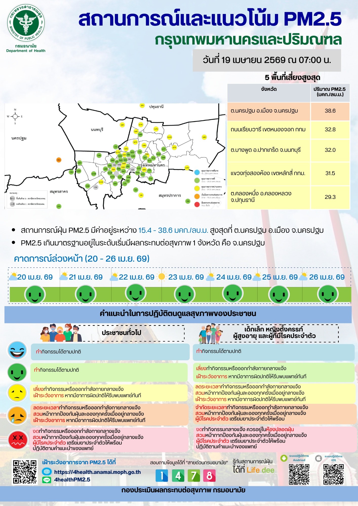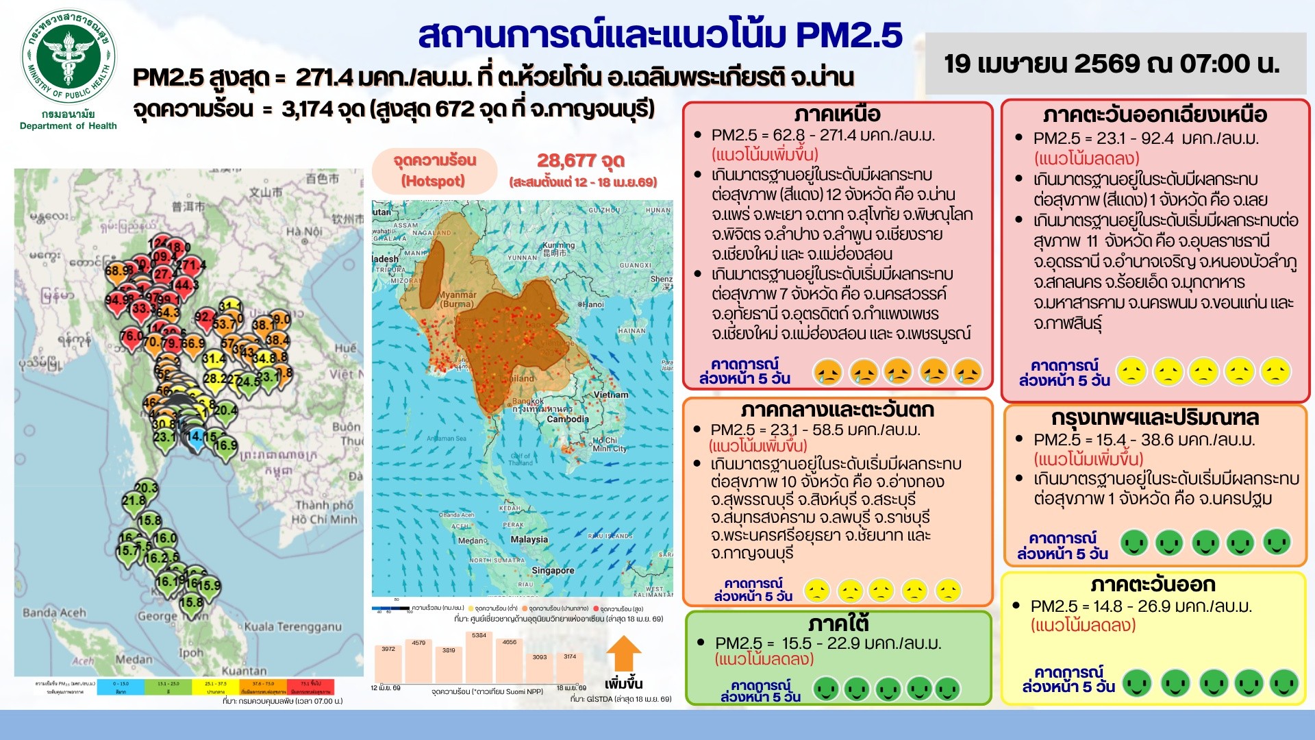 สถานการณ์และแนวโน้ม PM2.5 วันที่ 19 เมษายน 2569