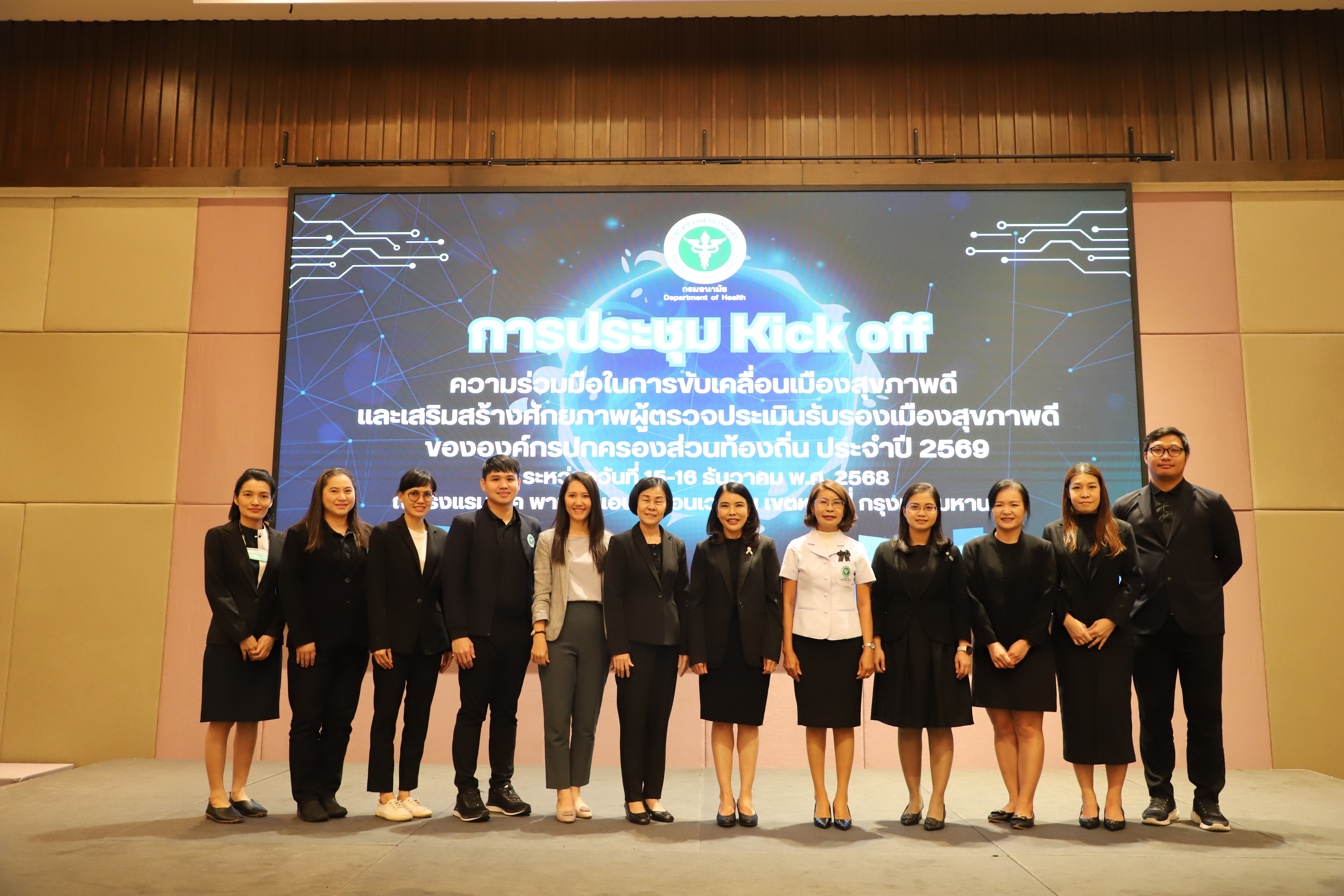 วันที่ 15-16 ธันวาคม 2568 นายแพทย์นเรศฤทธิ์ ขัดธะสีมา รองอธิบดีกรมอนามัย มอบหมายให้ ดร. จิตติมา รอดสวาสดิ์ ผู้อำนวยการกองประเมินผลกระทบต่อสุขภาพ เป็นประธานเปิดการประชุม Kick off ความร่วมมือในการขับเคลื่อนเมืองสุขภาพดี และเสริมสร้างศักยภาพผู้ตรวจประเมินรับรองเมืองสุขภาพดี ประจำปี 2569 ณ โรงแรมทีเค พาเลซ แอนด์ คอนเวนชั่น เขตหลักสี่ กรุงเทพมหานคร มีวัตถุประสงค์เพื่อสร้างเครือข่ายความร่วมมือการดำเนินงานขับเคลื่อนเมืองสุขภาพดี ประจำปีงบประมาณ 2569 และเพื่อพัฒนาศักยภาพของผู้ตรวจประเมินรับรองเมืองสุขภาพดีระดับเขตและจังหวัด เกี่ยวกับแนวทางการดำเนินงาน เกณฑ์มาตรฐานเมืองสุขภาพดี และแนวทางการยกระดับองค์กรปกครองส่วนท้องถิ่นสู่เครือข่ายเมืองสุขภาวะขององค์การอนามัยโลก และมีผู้เข้าร่วมประชุมจากองค์การอนามัยโลกประจำภูมิภาคเอเชียใต้และตะวันออก (WHO SEARO) ทีมห้องปฏิบัติการระดับภูมิภาคว่าด้วยธรรมาภิบาลเมืองเพื่อสุขภาพและความเป็นอยู่ที่ดี (UGHW) ศูนย์อนามัย สำนักงานสาธารณสุขจังหวัด และหน่วยงานกรมอนามัย ทั้ง Onsite และ Online จำนวน 200 คน