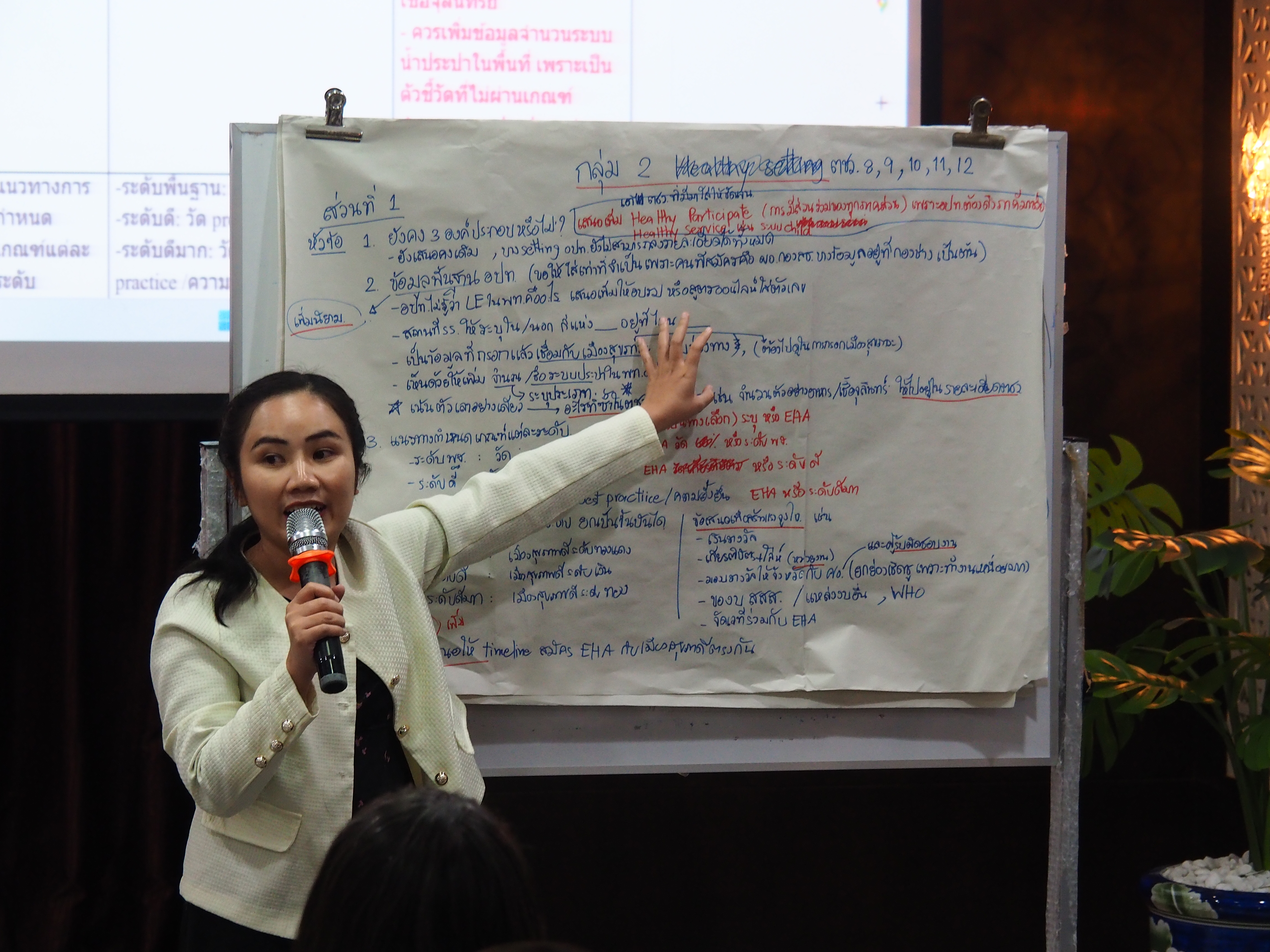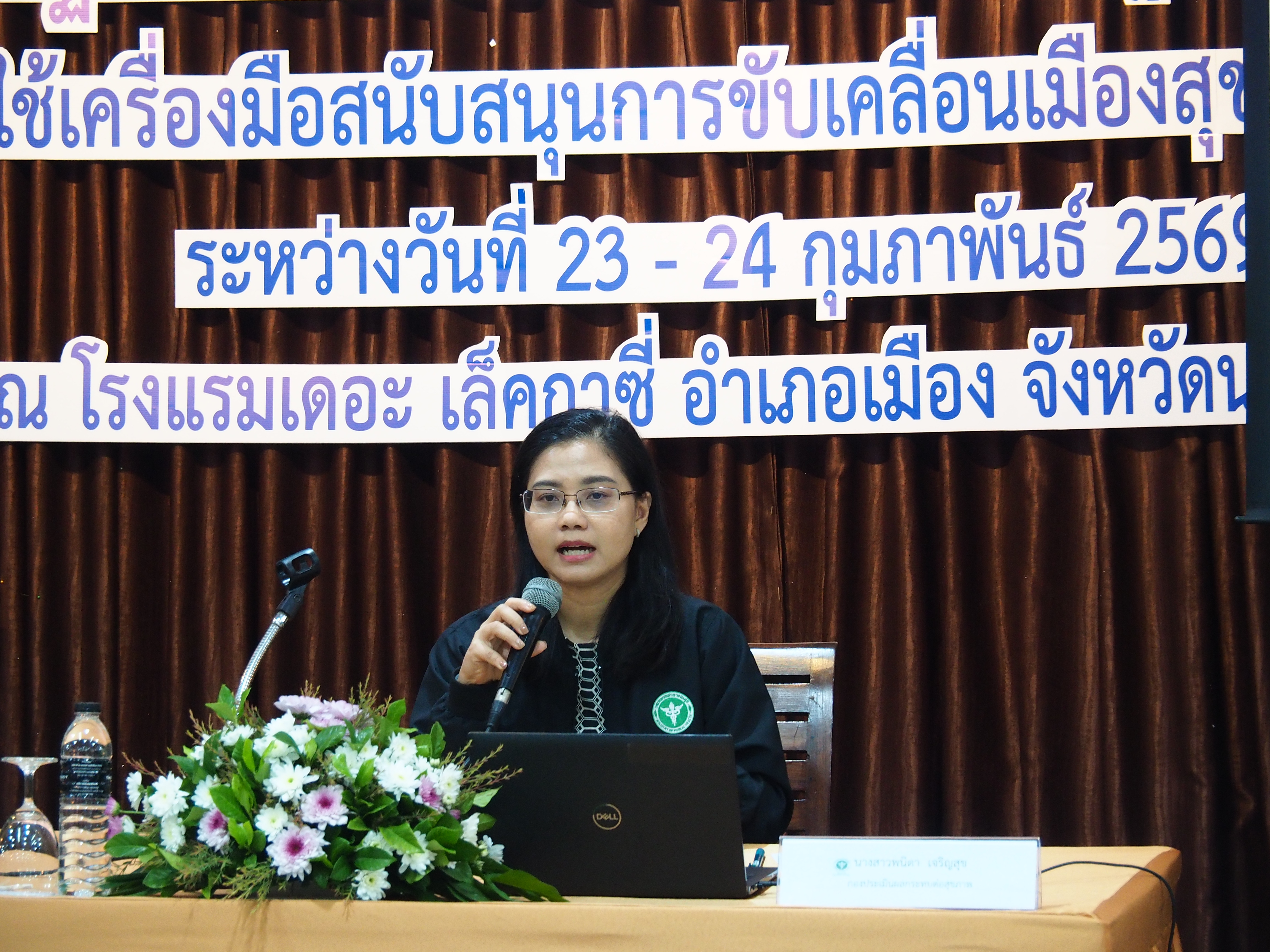 การบรรยาย“แนวทางการพัฒนาเกณฑ์และกลไกการประเมินเมืองสุขภาพดี” โดย นางสาวพนิตา เจริญสุข หัวหน้ากลุ่มประเมินปัจจัยเสี่ยงต่อสุขภาพจากโครงการและนโยบาย กองประเมินผลกระทบต่อสุขภาพ