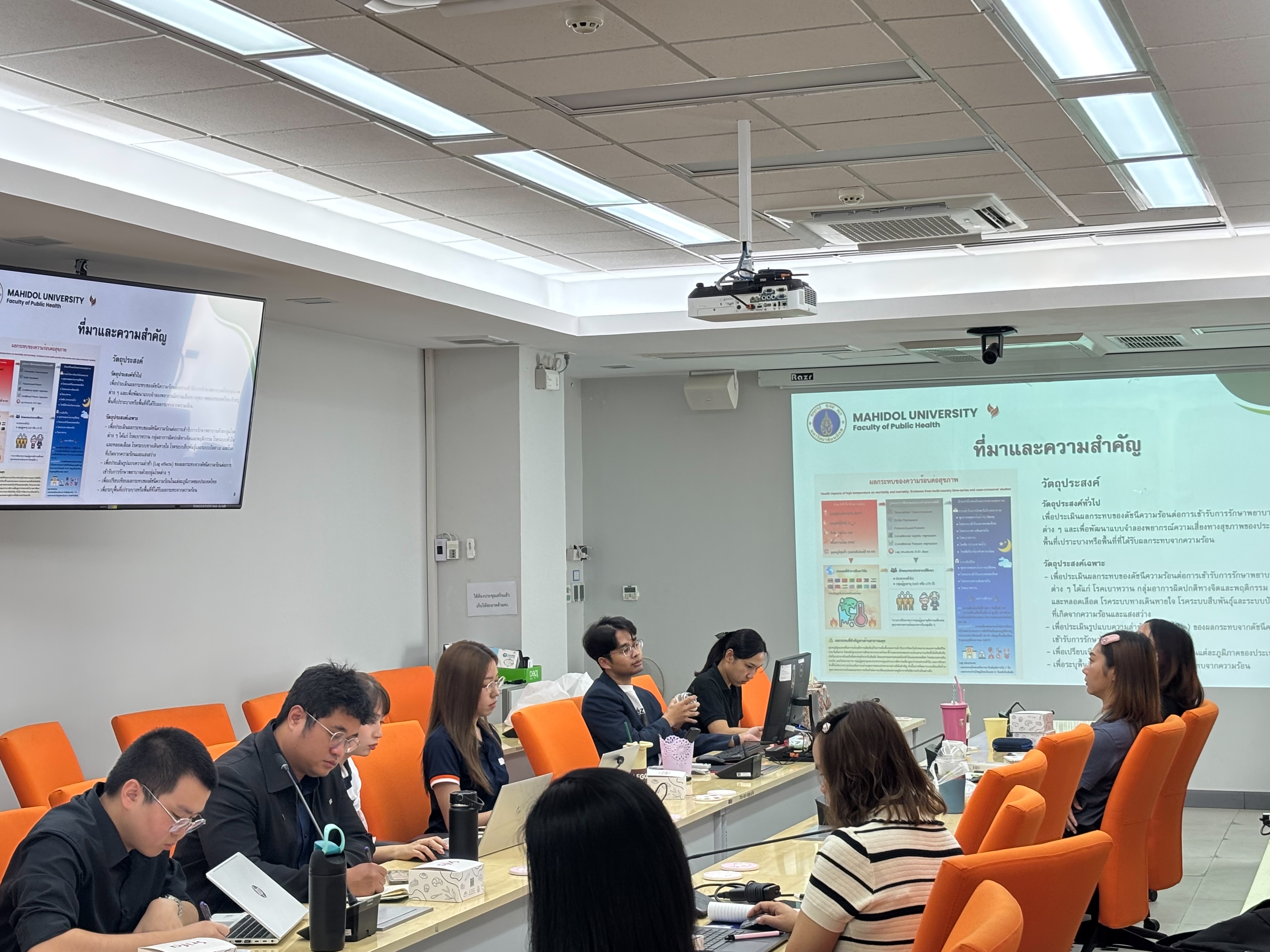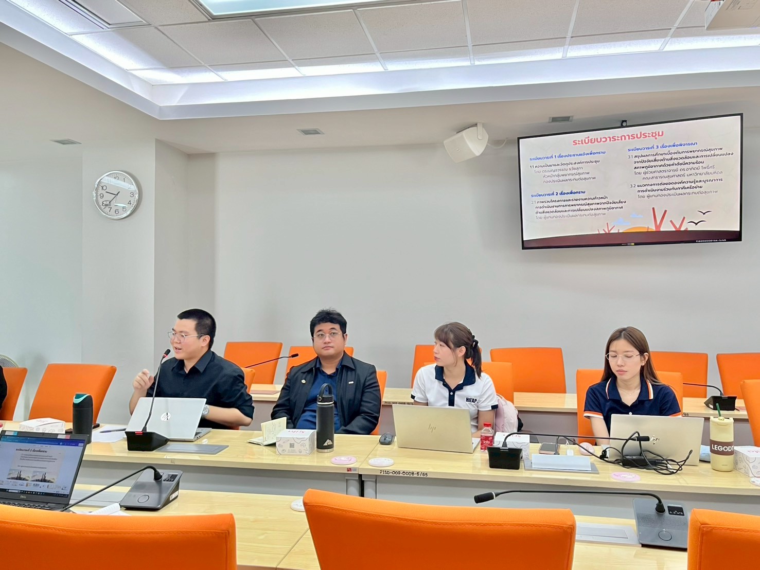 1. ที่ประชุมรับทราบภาพรวมโครงการและความก้าวหน้าการดำเนินงานโครงการการพยากรณ์สุขภาพจากปัจจัยเสี่ยงด้านสิ่งแวดล้อมและการเปลี่ยนแปลงสภาพภูมิอากาศกรณีดัชนีความร้อน