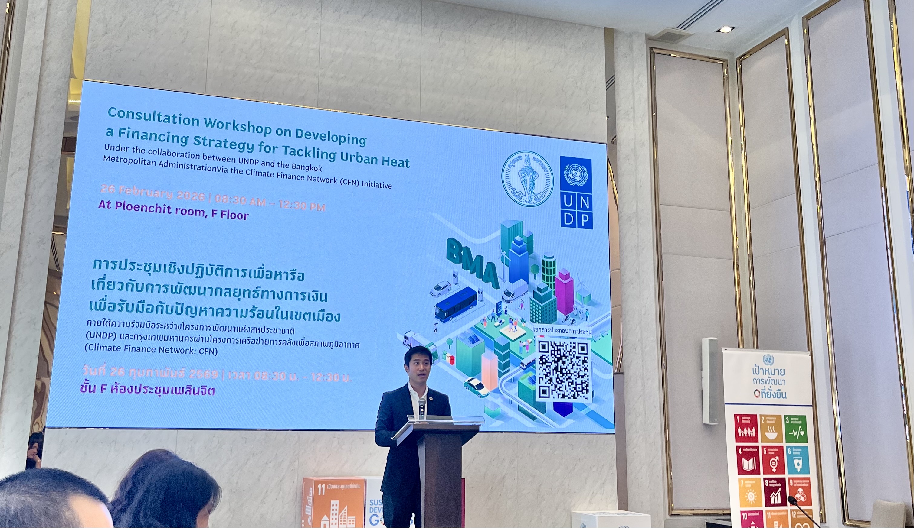รประชุมเชิงปฏิบัติการเพื่อหารือเกี่ยวกับการพัฒนากลยุทธ์ทางการเงินเพื่อรับมือกับปัญหาความร้อนในเขตเมือง ภายใต้ความร่วมมือระหว่างโครงการพัฒนาแห่งสหประชาชาติ (UNDP) และกรุงเทพมหานคร