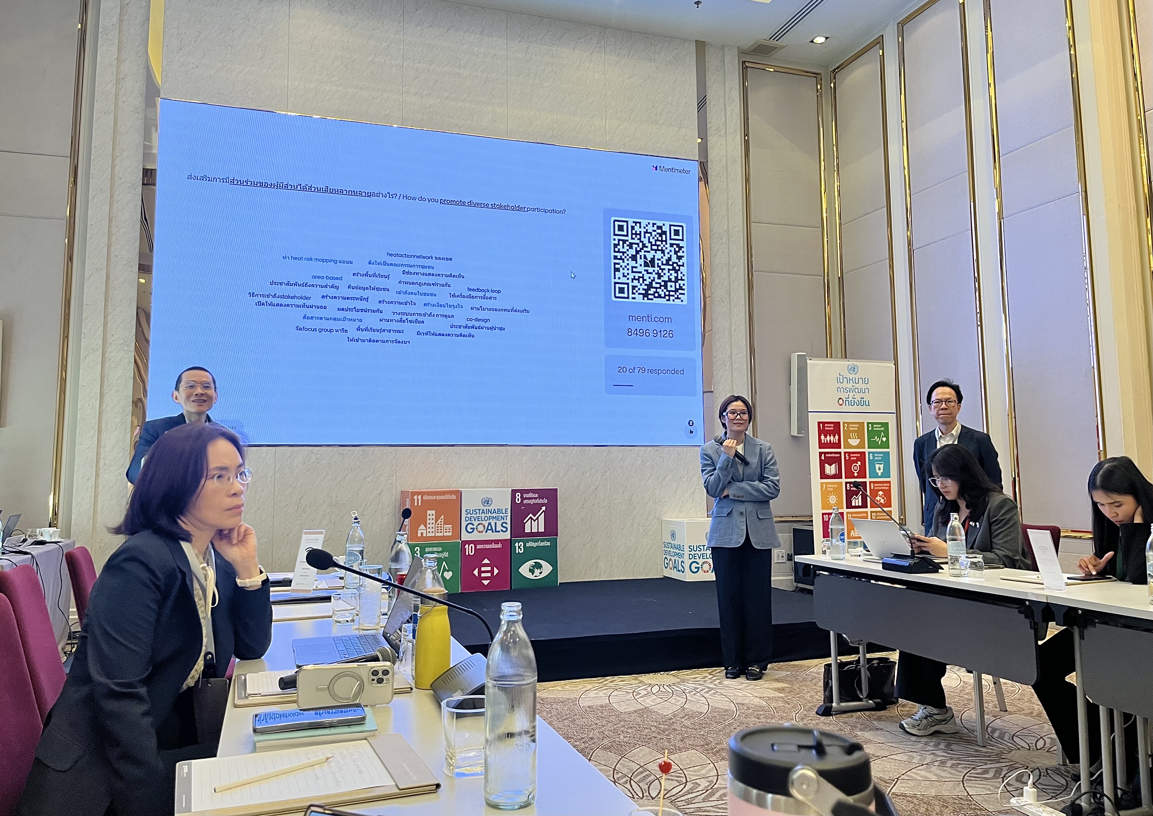 การหารือประกอบด้วยการทบทวนมาตรการที่กำหนดไว้ในแผนปฏิบัติการความร้อนเมือง การพิจารณาช่องว่างด้านมิติเพศและการมีส่วนร่วมทางสังคม รวมถึงช่องว่างทางการเงิน อุปสรรค ศักยภาพ และความต้องการการสนับสนุน ผ่านการแลกเปลี่ยนความคิดเห็นและถ่ายทอดประสบการณ์จากหน่วยงานภาคีที่เกี่ยวข้อง โดยพบประเด็นสำคัญที่ต้องการผลักดันให้เห็นความสำคัญมากขึ้น ได้แก่ ผลกระทบของความร้อนในเมืองต่อกลุ่มเปราะบาง เช่น เด็ก ผู้ทำงานกลางแจ้ง ผู้สูงอายุ ผู้ป่วยติดเตียง ซึ่งเป็นกลุ่มที่ต้องเผชิญความเสี่ยงสูงเป็นพิเศษ นอกจากนี้ หน่วยงานภาคีได้สะท้อนความต้องการการสนับสนุนด้านการวิเคราะห์ความคุ้มค่าและประสิทธิผลของโครงการ ซึ่งถือเป็นปัจจัยสำคัญในการจัดลำดับความสำคัญและการตัดสินใจลงทุน ทั้งในแง่การใช้งบประมาณของกรุงเทพมหานครและการเข้าถึงแหล่งเงินทุนจากภายนอก