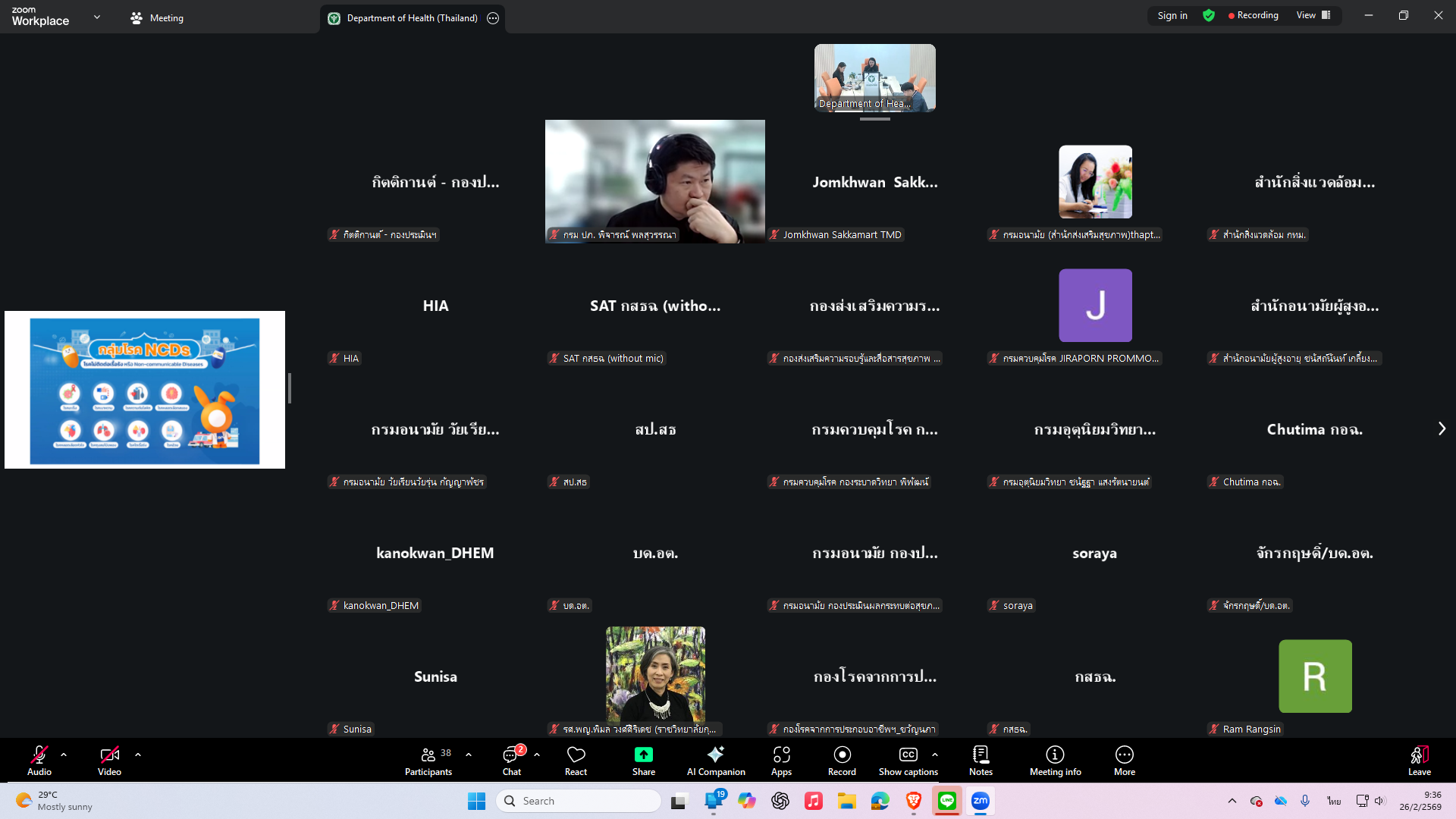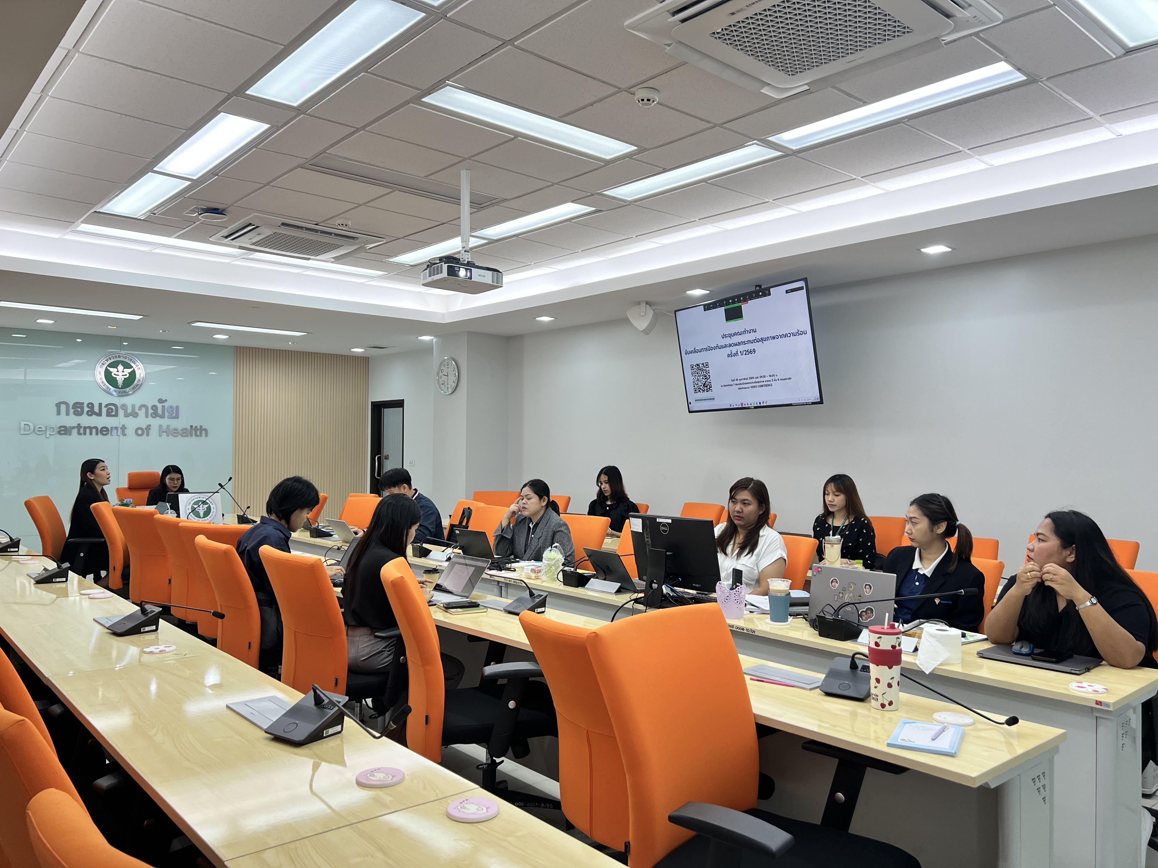 วันที่ 26 กุมภาพันธ์ 2569 กองประเมินผลกระทบต่อสุขภาพ ได้จัดประชุมคณะทำงานขับเคลื่อนการป้องกันและลดผลกระทบต่อสุขภาพจากความร้อน ครั้งที่ 1/2569 ณ ห้องประชุม 1 กองประเมินผลกระทบต่อสุขภาพ กรมอนามัย อาคาร 5 ชั้น 6 และผ่านระบบ Video Conference โดยมี ดร.จิตติมา รอดสวาสดิ์ ผู้อำนวยการกองประเมินผลกระทบต่อสุขภาพ เป็นประธานการประชุม ผู้เข้าร่วมประชุม ประกอบด้วย กรมอุตุนิยมวิทยา กรมป้องกันและบรรเทาสาธารณภัย กรมการเปลี่ยนแปลงสภาพภูมิอากาศและสิ่งแวดล้อม สำนักงานพัฒนาเทคโนโลยีอวกาศและภูมิสารสนเทศ (องค์การมหาชน) สำนักสิ่งแวดล้อม กรุงเทพมหานคร มหาวิทยาลัยเกษตรศาสตร์ ราชวิทยาลัยกุมารแพทย์แห่งประเทศไทย สำนักงานปลัดกระทรวงสาธารณสุข กรมควบคุมโรค กรมการแพทย์ และเจ้าหน้าที่จากหน่วยงานส่วนกลางกรมอนามัย การประชุมครั้งนี้ มีวัตถุประสงค์เพื่อจัดทำ (ร่าง) มาตรการด้านการแพทย์และสาธารณสุข กรณีความร้อน และแผนปฏิบัติการเพื่อรับมือผลกระทบต่อสุขภาพจากความร้อน รวมทั้ง (ร่าง) คำสั่งแต่งตั้งคณะทำงานขับเคลื่อนฯ
