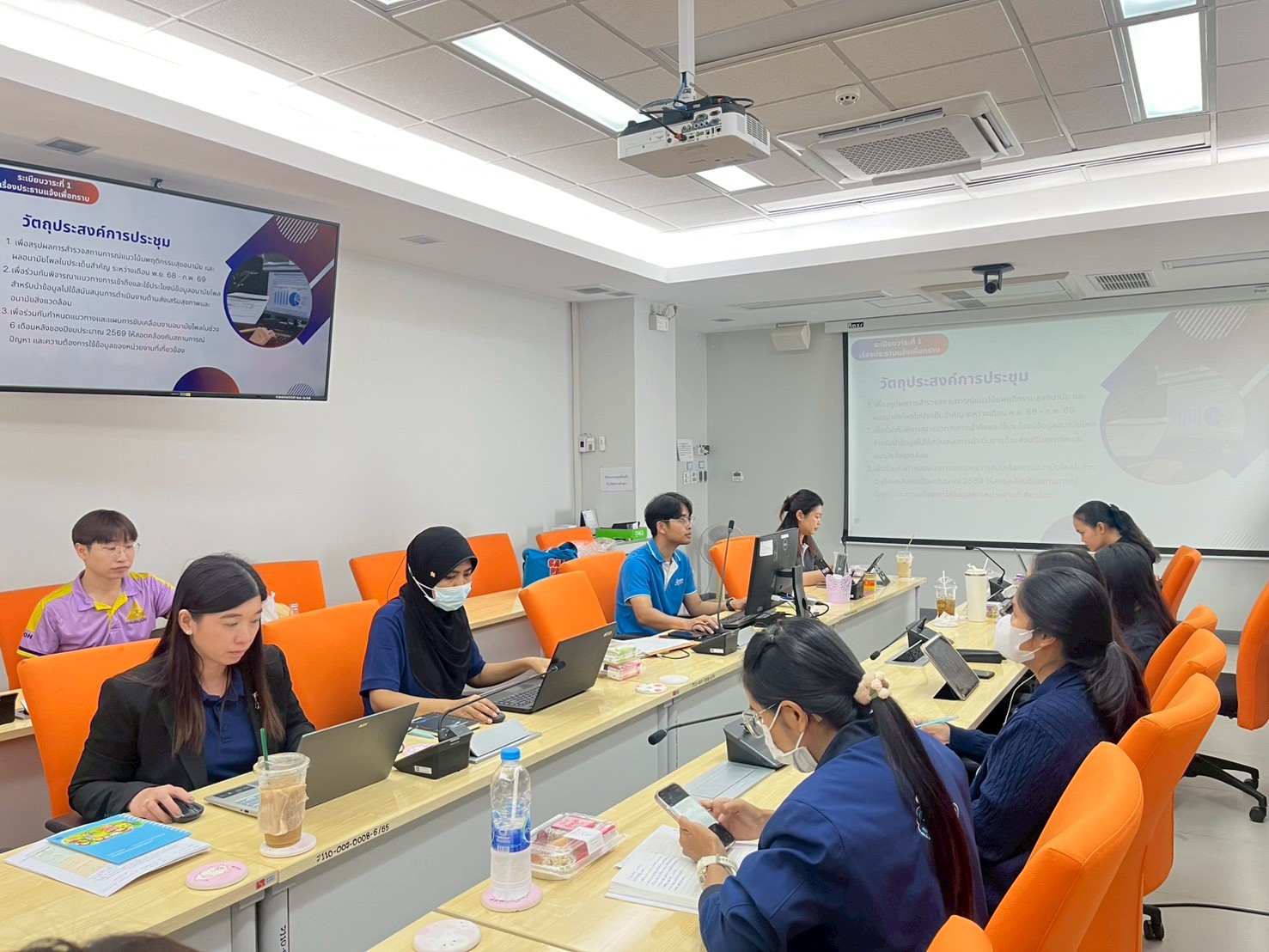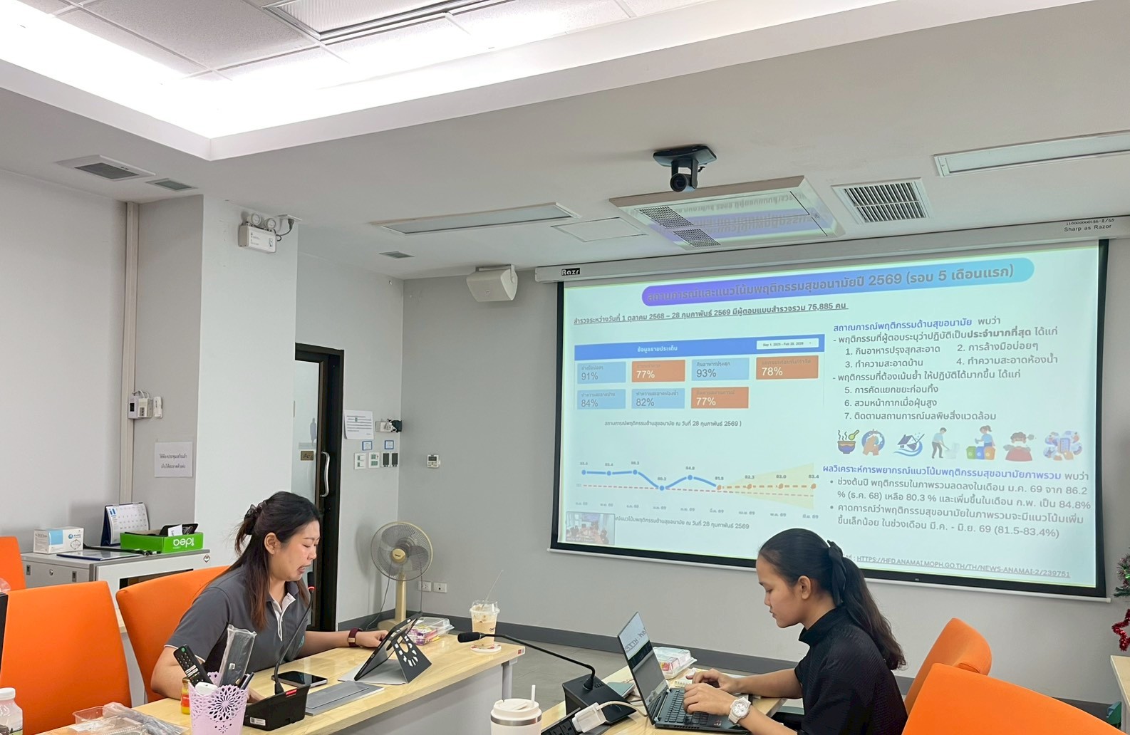 1) ที่ประชุมรับทราบสรุปผลการสำรวจสถานการณ์แนวโน้มพฤติกรรมสุขอนามัย และผลอนามัยโพลในประเด็นสำคัญ ระหว่างเดือนพฤศจิกายน 2568 – กุมภาพันธ์ 2569 ได้แก่